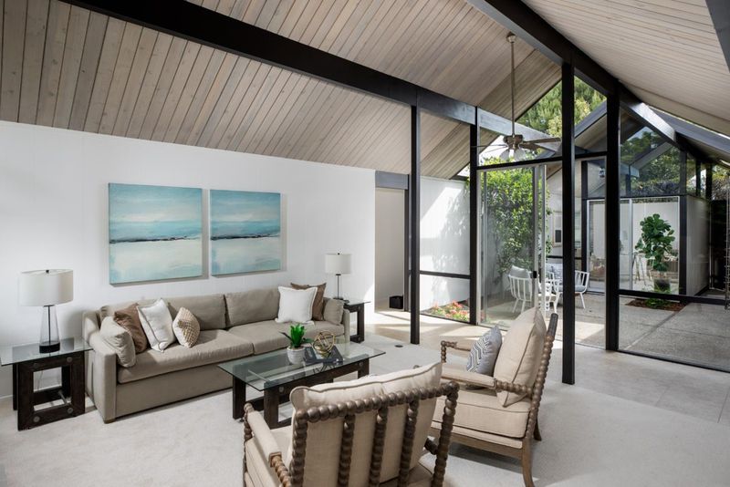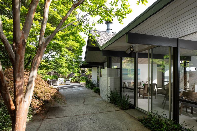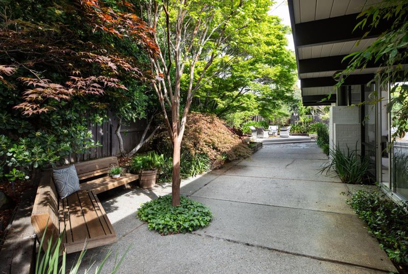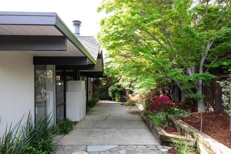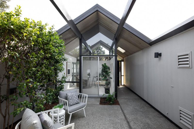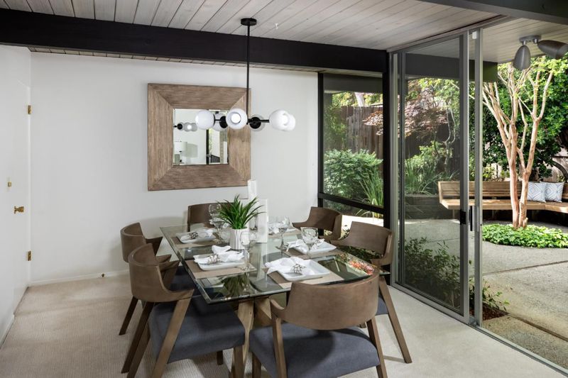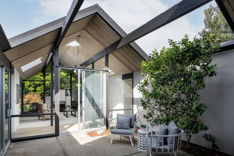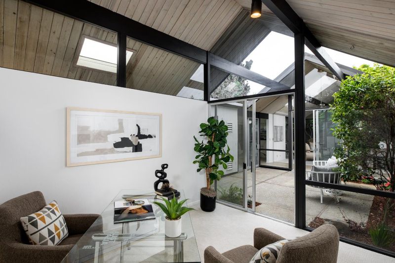 The open-air atrium foyer which allows light to the center of this beautifully built home. A rare opportunity to own an iconically designed Eichler with timeless minimalist appeal. Walls of glass, sleek lines, fresh finishes. Top Cupertino Schools.