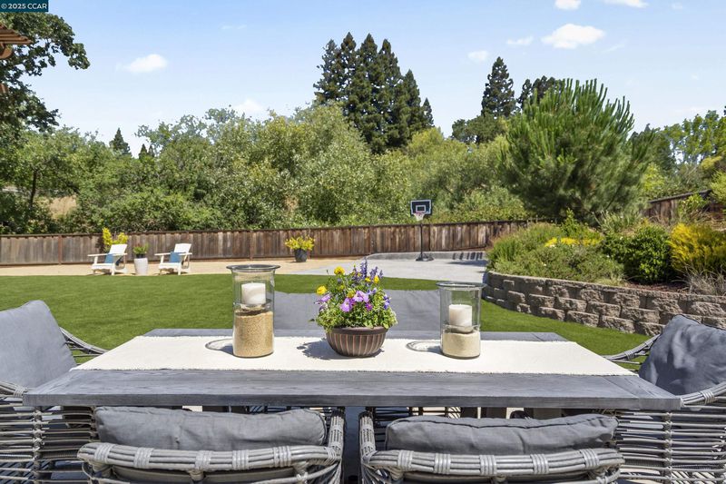 This single-story rancher is made for living, playing, and gathering. The expanded Great Room is filled with natural light and opens to a backyard designed for fun — sports court, putting green, wide turf lawn, and a shaded pergola for relaxing while the kids entertain themselves. With no rear neighbors and hillside views, it’s private and peaceful. The open kitchen is the heart of the home, with stainless Thermador appliances, a large island for casual meals, and a wine bar that makes hosting easy. Wide-plank hardwood floors, updated baths, and Milgard windows bring comfort and style throughout. Recent renovations plus the oversized Great Room add even more value: new roof, siding, porch, stone details, and landscaping ensure everything is move-in ready. Extra long driveway to park 4 cars. Located in a vibrant, revitalized neighborhood close to parks, trails, top schools, downtown and highly-rated Roundhill and Diablo Country Clubs. Priority access to Green Valley Pool for Cameo families. A home that’s ready to welcome yours. True sense of community. Amazing opportunity to live in a top Danville neighborhood. What could be better? Open Saturday and Sunday 2-4pm.