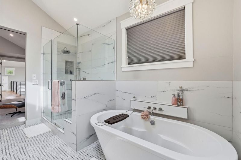 - Double Sinks, Shower and Tub, Skylight, Solid Surface, Stall Shower, Tile, Tub