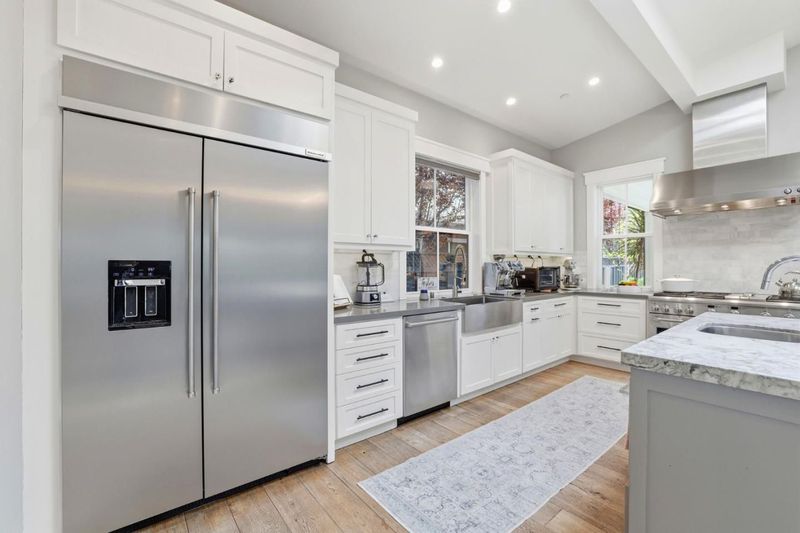 This beautiful modern farmhouse is located in one of Willow Glens great neighborhoods and features open modern design w/ 10' and vaulted ceilings, 8' doors, oak flooring, shaker cabinetry, large Kitchen, slab island counter and an immense great room with stacking doors opening to a covered patio with fire pit. Built by Union Pacific, one of Silicon Valley's premier builders that is known for quality construction. This 5 Bedroom 4 Bath is stunning with many custom touches including office/den w/dual work stations, Bedroom and full bath downstairs, an Au pair en suite bedroom. Primary suite with shower and separate tub. Kitchen features professional gas range with double ovens, custo refrigerator, 2 dishwashers, wine refrigerator, and ice maker. Rear yard features outdoor BBQ Island w/gas grill,smoker, and retractable awning and a faux lawn for water savings. Energy efficiency includes Tesla solar panels with two power walls and EV charging station in garage. This home is designed for seamless indoor/outdoor entertaining taking full advantage of the California Lifestyle.